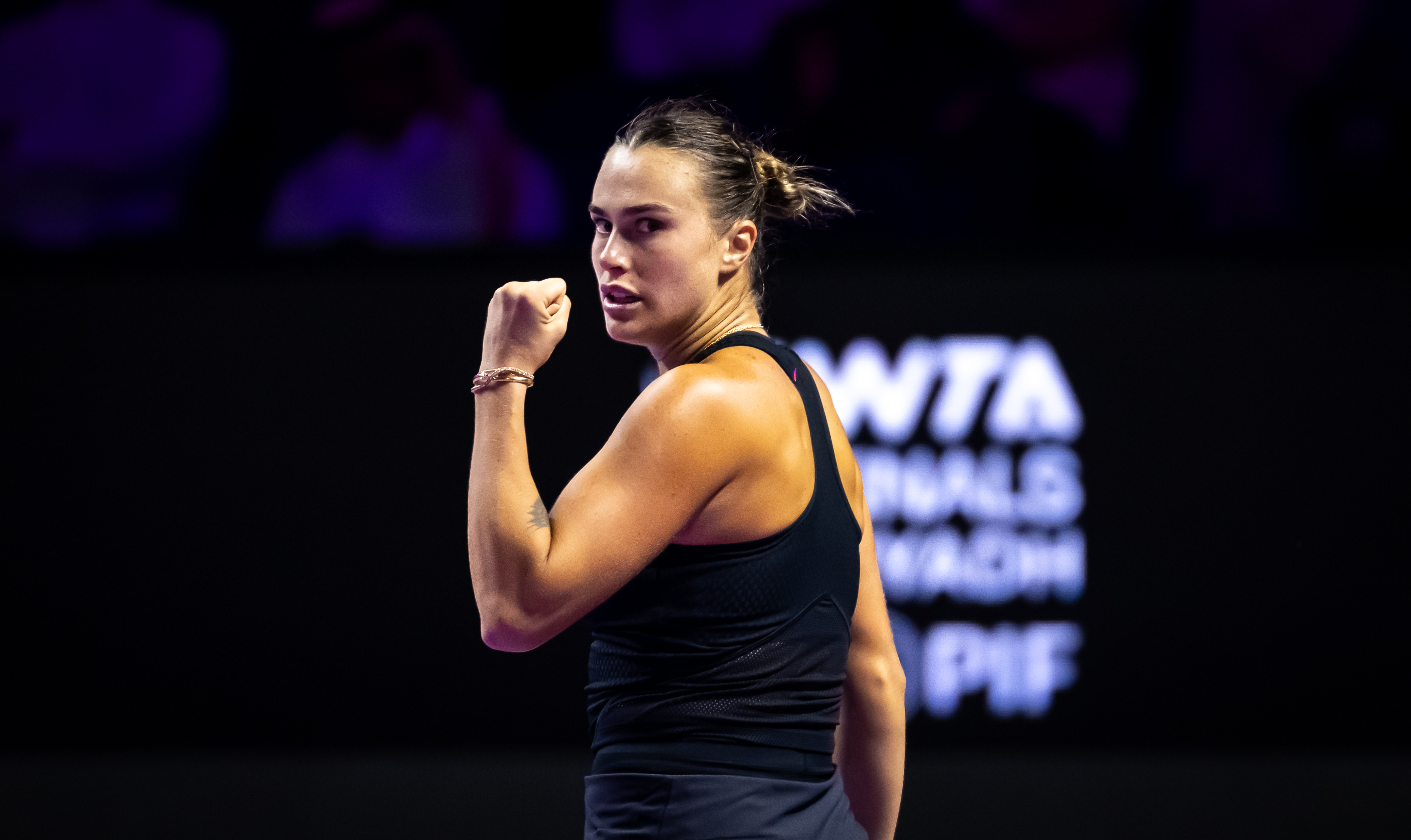 La jugadora de Minsk, que en su primer partido ganó a la china Zheng Qinwen por 6-3 y 6-4, añadió otro triunfo en esta competición que reúne a las ocho mejores jugadoras de la temporada. Esta segunda victoria, añadida a la lograda por Qinwen contra la kazaja Elena Rybakina en el duelo anterior, hace que Sabalenka acabe como líder del Grupo Púrpura y se clasifique como campeona del cuarteto a las semifinales.